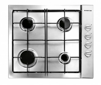 Inventum IKG6010RVS. Case design: Built-in, Hob type: Gas, Top surface type: Stainless steel. Control type: Rotary, Control position: Top right, Cable length: 1 m. Connected load (electric): 0.6 W, Connected load (gas): 7500 W. Width: 590 mm, Depth: 510 mm, Height: 45 mm