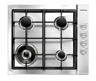 Inventum IKG6012WGRVS. Case design: Built-in, Hob type: Gas, Top surface type: Stainless steel. Control type: Rotary, Control position: Top right, Cable length: 1 m. Connected load (electric): 0.6 W, Connected load (gas): 8000 W, AC input voltage: 230-240 V. Width: 590 mm, Depth: 510 mm, Height: 45 mm