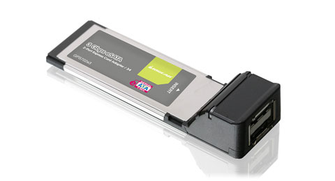 The IOGEAR eSATA 3Gbps Dual Port ExpressCard/34 adds 2 eSATA ports to your laptop computer. It is great for users who want to add SATA connectivity to their laptops but do not want to buy a whole new laptop. Devices commonly used with eSATA ExpressCard/34 adapter are next generation hard drives, DVD drives such as Blu-ray optical drives, HD-DVD drives and personal media drives. The slim, portable design fit easily into a laptop bag or backpack.
