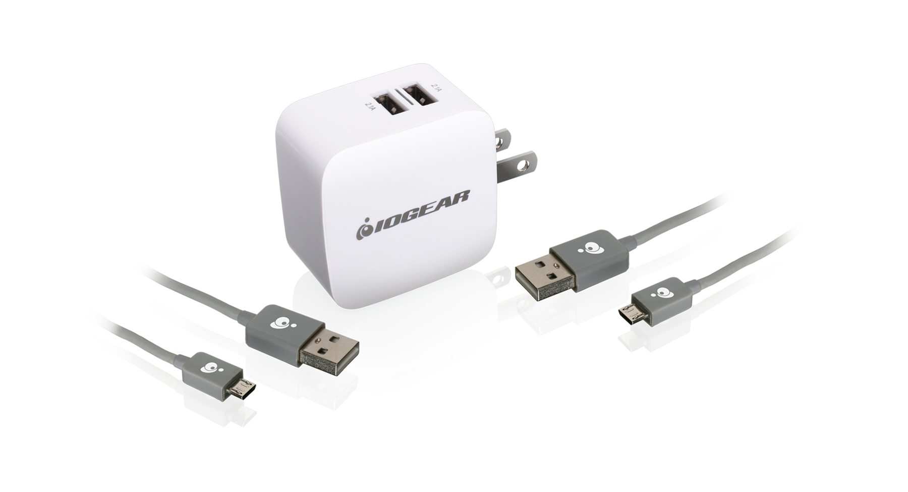 Two Micro USB Charge & Sync cables come included in the GearPower Dual USB 4.2A Wall Charger Kit. IOGEAR's super flexible Charge & Sync cables meet or exceed OEM cable standards for performance without being stiff or difficult to coil. High-grade materials enable thinner construction and make for a non-bulky, tangle-free cable. These cables are great for items such as smartphones, tablets, cameras, video game controllers, e-readers (Kindle, NOOK, etc.) and GPS units.