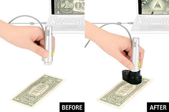- Hold it flat against your subject; mounts on the front of the document camera body.