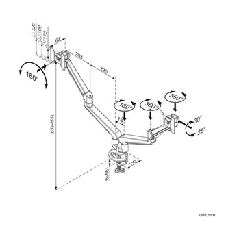 ITB RO17.03.1148. Maximum weight capacity: 8 kg, Minimum screen size compatibility: 38.1 cm (15"), Maximum screen size compatibility: 50.8 cm (20"). Pivot angle: -90 - 90°, Tilt angle: -30 - 25°, Angle of rotation: 360°. Colour of product: Silver, Material: Aluminium. Package type: Box