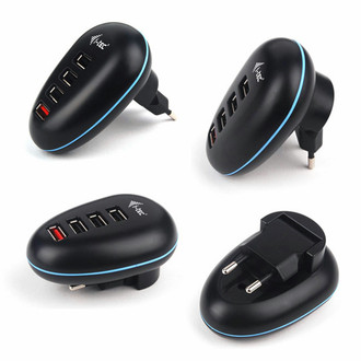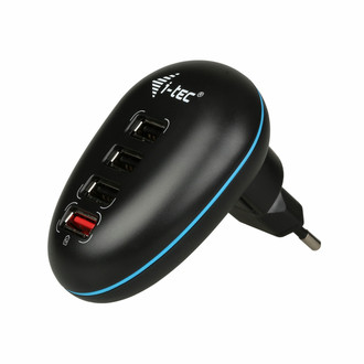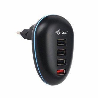i-tec USB Power Quatro Charger 4 Port is a network-based USB charger for mobile phones, tablets, GPS navigations, powerbanks, music players, cameras and other types of digital equipment. You can charge up to 4 pieces of USB equipment simultaneously. One USB port DC 5 V / max. 2,1 A are designed for fast and efficient charging of mobile equipment requiring high charging current. Further, they include special identification circuits for the iPad/iPhone and Samsung phones and tablets. The AC 100-240 V input enables global use. Safety is ensured by over-current protection and by constant charging current. This USB charger can be used in homes, in business centers and also in offices.