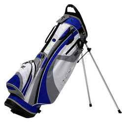KING Stand BAG - Blue/white/grey The ultra-light full featured KING Stand Bag weighs less than 5 lbs and leverages IZZO’s original Dual Strap technology – combining our Comfort Swivel™ design with a patented “rotater” connection – that renders the KING extremely comfortable. Easy On, Easy Off, Easy to Carry! The KING also features a special angled crown for easier club selection, and includes 8-way top with full-length dividers and an integrated putter guard for maximum protection. a full featured stand bag that is truly a pleasure to carry!