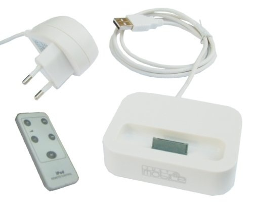 The docking station white Just Mobile for iPod Video with remote incorporates three functions in one: a synchronization USB, USB charging and AC charger is included for quick battery charging, it has a video and TV output via Y / C or RCA to connect your iPod to a TV and a stereo audio output mini jack for connection to speakers, a remote control is provided for control of your iPod remotely.