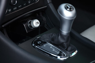 Highway™ plugs into your car's cigarette lighter socket, revealing its diamond-tread aluminum head with subtle power light. Highway’s USB port delivers a 2.1A output to rapidly charge your gadgets - with a built-in fuse to protect them from power surges.
