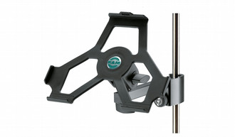 The clever way to display your iPad. The connector holds an iPad securely and comfortably. Whether on stage, in the rehearsal room or at home - the strong prismatic element with its ergonomic clamping screw allows the iPad holder to be attached quickly and easily to any tubes up to 30 mm diameter. The iPad snaps in and out of the holder effortlessly. The pivoting range is second to none, allowing the user the iPad position of their choice. The swivel movement can be adjusted from free to resistant. The iPad switches rapidly between the vertical and horizontal format without slipping.