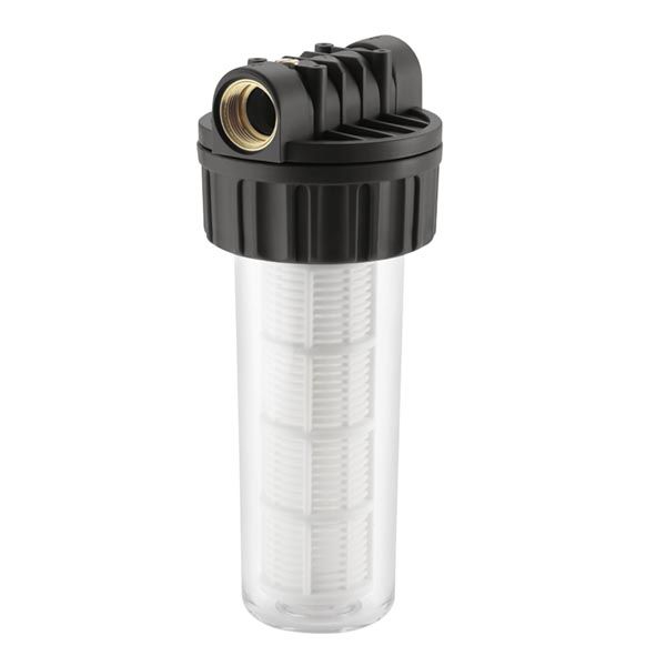 Pump prefilter protects garden pumps and high-pressure pumps against coarse particles or sand.