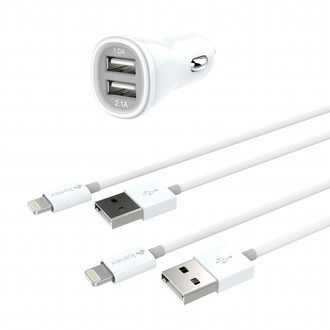 2-Port USB Car Charger/2 Charge/Sync Cables, white