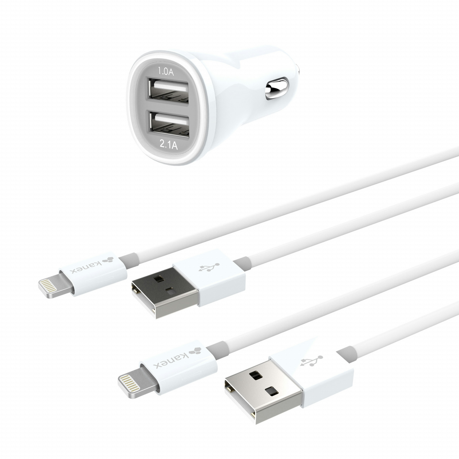 With the Kanex 2-Port Car Charger, keep your iPhone, iPod, or iPad charged while on the road. Use the included Kanex Lightning Cables to keep your iPhone/iPad and your passenger’s mobile device fully charged on the go.
