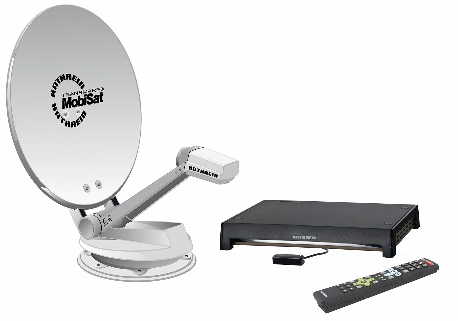 MobiSet 4; Sat system HDTV comprising turn-table with offset parabol antenna, twin LNB and HDTV caravan receiver UFS 940sw