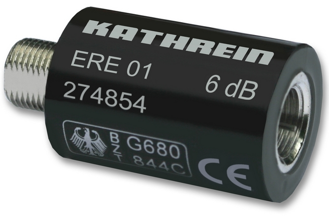 F-type attenuation plug, 6dB; 0-2400MHz; remote feedable: 24V/1A, screen class A