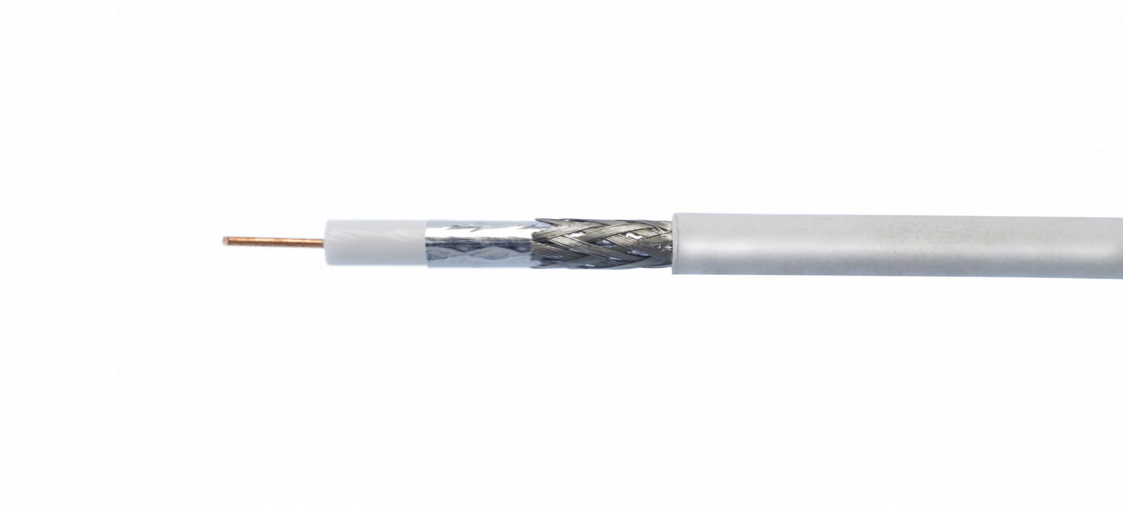 Coaxial cable 5 mm; PVC white; 100 m one-way drum; screening factor: 90 dB; metre marking; attn./100 m: 26 dB (860 MHz), 43 dB (2150 MHz)