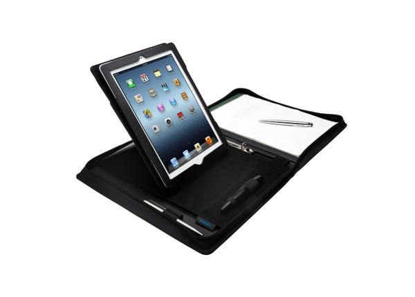 Unzip the Kensington Folio Trio Mobile Workstation and you’ll find a place for everything whether you’re keeping handouts sorted in the removable 2-ring binder, browsing the web on your new iPad or iPad2 or simply taking notes. The built-in stand holds your iPad in portrait or in landscape mode and the convenient loops store your stylus and pen. Plus there are plenty of pockets to organize business or credit cards.