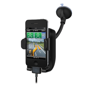 Give your iPhone 4 GPS, podcasts, and phone calls a sound boost. The built-in amplification system in the SoundWave™ Sound Amplifying Car Mount doubles the volume coming from your iPhone speaker, making it easier to hear your turn-by-turn directions, calls and more. The cradle mounts in seconds to the windshield or vent and holds your iPhone securely-even when in a case-on the roughest terrain.