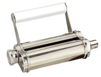 An adjustable thickness pasta roller for creating a variety of pasta dishes. 4 different cutters are available to cut the flat pasta in Tagliatelle, Tagliolini, Trenette and spaghetti.
