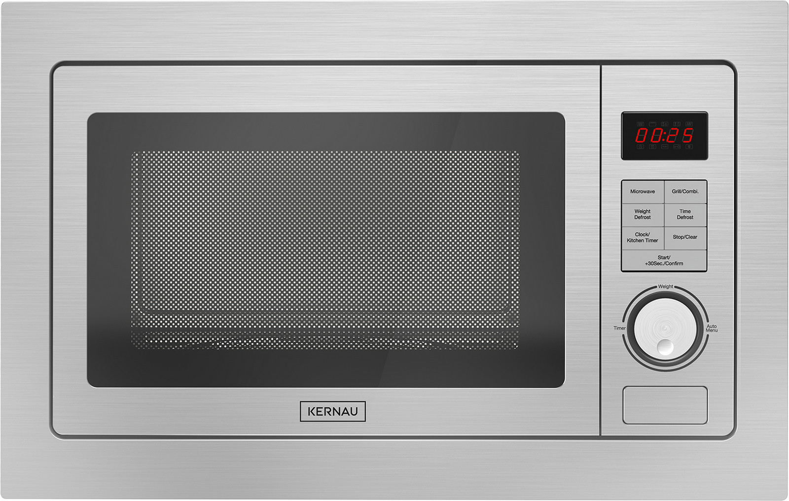 KERNAU KMO251GX. Case design: Built-in, Product type: Grill microwave, Interior capacity: 25 L. AC input voltage: 220-240 V, AC input frequency: 50/60 Hz. Width: 594 mm, Depth: 410 mm, Height: 388 mm