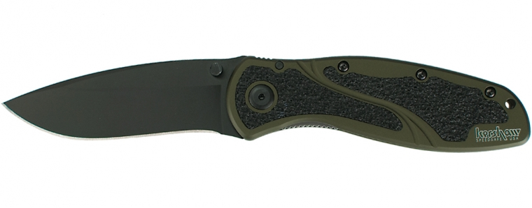 The olive drab Blur’s 14C28N high-performance stainless-steel blade is DLC (Diamond-Like Carbon) coated for additional wear and corrosion resistance. DLC is hard, non-reflective, and just plain looks good.
