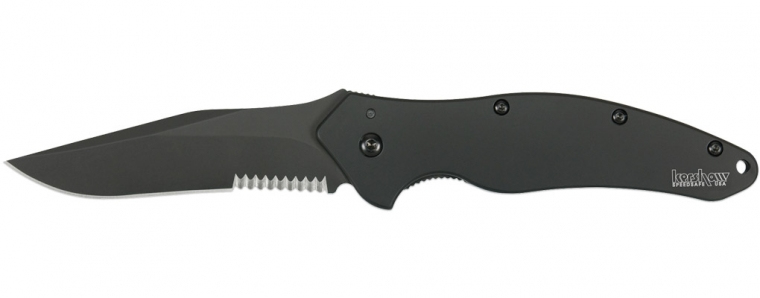 A scratch-resistant DLC coating turns both blade and pure steel handle to classy black. The slight recurve in the blade makes it perfect for multi-tasking, from slicing to piercing. For even more cutting versatility, this Black Shallot offers a partially serrated blade. For easy, one-handed opening, the black Shallot is equipped with SpeedSafe assisted opening. And since it opens with an ambidextrous flipper on the top of the knife, it’s perfect for both left- and right-handed users. Just pull back on the flipper—actually a protrusion on the back of the blade—to start the blade out of the handle. Once started, SpeedSafe takes over and the blade clicks smoothly into place, ready for use.