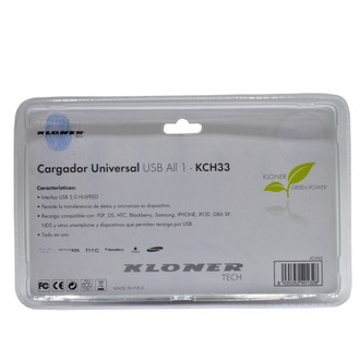 Kloner KCH33. Charger type: Auto, Charger compatibility: GPS, Mobile phone, Portable gaming console, Tablet, Power source type: USB. Colour of product: White, LED indicators: Power