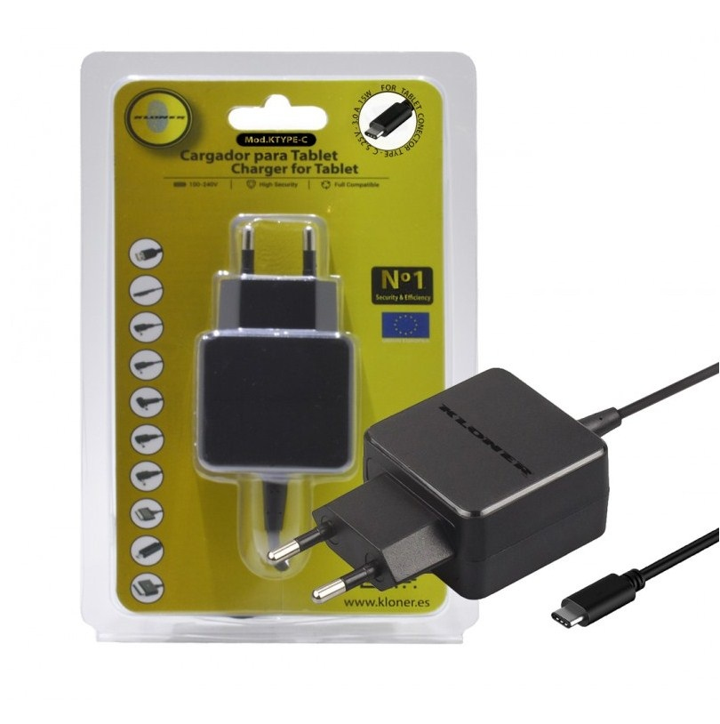 Kloner KTYPEC. Charger type: Indoor, Charger compatibility: Smartphone, Power source type: AC. Colour of product: Black. Input voltage: 100 - 240, Output voltage: 5.25 V, Output current: 3000 mA. Package type: Blister