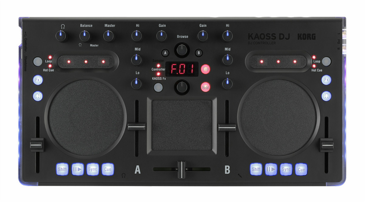 The KAOSS DJ is sleek and streamlined; with high-visibility LEDs providing constant feedback to the user. At a mere 730 grams, it’s ready to go anywhere your laptop is.