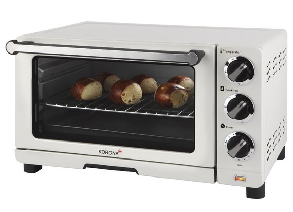 Korona 57150. Oven type: Electric oven, Total oven(s) interior capacity: 18 L, Total oven power: 1300 W. Colour of product: White, Control type: Rotary, Control position: Front. Timer type: Mechanical. Power consumption (typical): 1300 W. Width: 415 mm, Depth: 345 mm, Height: 250 mm