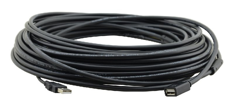 Due to its design, USB cable has a normal maximum length of about 5 meters (16.4 feet), but you can get longer distances by using the CPA−UAM/UAF active USB extension cable from Kramer!