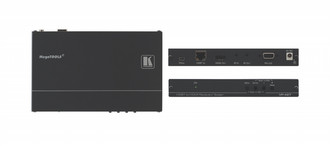 The Kramer VP−427 is a receiver/scaler for HDBaseT twisted pair, HDMI, bidirectional RS−232 and IR signals. The unit receives an HDBaseT signal that it converts to HDMI, IR and RS−232 signals. It up− or down−scales the picture to match the resolution of the HDMI monitor.