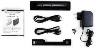 Kraun KR.6C. Supported storage drive interfaces: Serial ATA, Serial ATA II. Colour of product: Black. Cables included: eSATA, USB