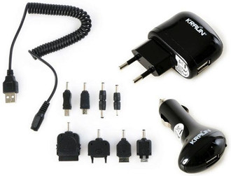 Kraun KR.HL. Charger type: Auto, Indoor, Charger compatibility: Digital camera, Mobile phone, MP3, PDA, Tablet, Power source type: AC, Cigar lighter, USB. Colour of product: Black. Cable type: USB