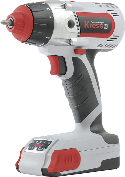 - 2-speed planetary gear with high torque in the 1st gear for screwing, high speed in the 2nd gear for drilling