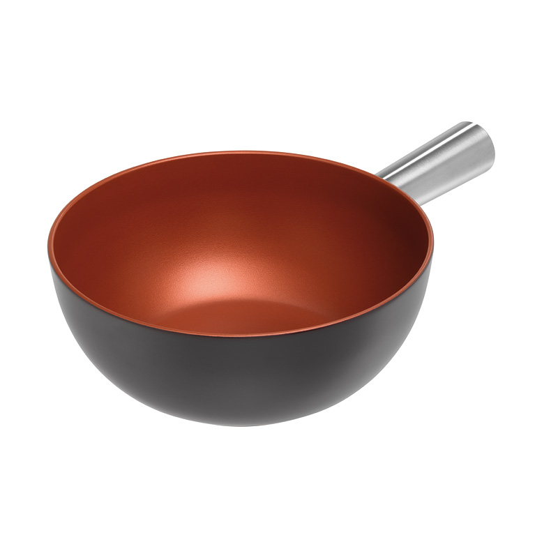 The aluminium fondue pot in the festive copper clay demonstrates a superb thermal conductivity. It is versatile as it can be used as a longhandled pan, wok and sauteuse and is also suitable for induction hobs.