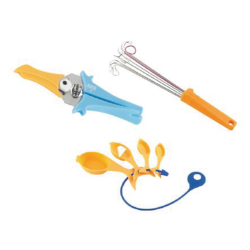Kinderkitchen salad set, 3 pieces Set consisting of: Bird scissors, Bird's whisk, Goldfish measuring spoons.