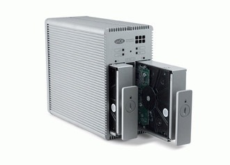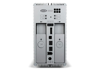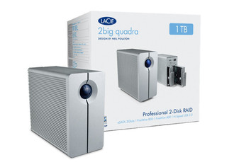 The LaCie 2big Quadra is the most complete 2-disk RAID solution for digital libraries, creative pro and office workstations that need storage/backup capacity, speed, and advanced data protection. It’s easy to use, and comes with two extractable, lockable and hot-swappable disks in RAID 1 mode. With burst transfer rates as high as 165MB/s (eSATA 3Gb/s) in RAID 0, the 2big Quadra is ideal for high speed-demanding applications like audio/video projects (DV and SD video playback or 2D/3D imaging). It functions as a complete solution for data protection, and comes with advanced backup software with computer recovery options: Genie Backup Manager Pro™ for Windows® and Intego Backup Manager Pro™ for Mac® users. The sturdy, aluminum heat sink design—with 60% more surface area for heat dissipation—keeps it quiet and safe. This versatile solution offers various space-saving configurations—upright, horizontal, stacked, or rack-mounted. The LaCie Shortcut Button on the front launches any backup or library application of your choice in just one push.