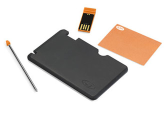 With a durable USB flash key, pen, and notebook integrated into a credit card-sized case, the LaCie WriteCard gives you everything you need to record both your high- and low-tech data. Its innovative case features a soft touch surface, and fits easily in your wallet. The scratch- and water-resistant USB flash key slides right out of the case, ready to back up or transfer your files, whether you’re on a PC or Mac. When you need to write down a phone number or address in a pinch, slide out the handy pen and notepad. Whatever you need to record, the LaCie WriteCard has you covered. In addition, it comes with 4GB of secure online storage from Wuala.