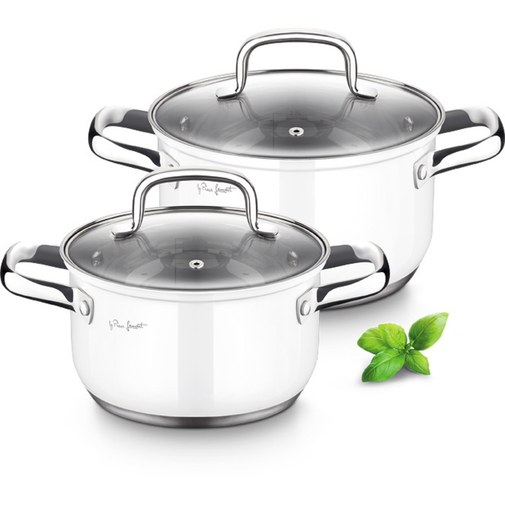 - Design stainless steel cookware made from first-class corrosion resistant steel includes a solid sandwich base with very elegant handles for greater safety, functionality and comfort.