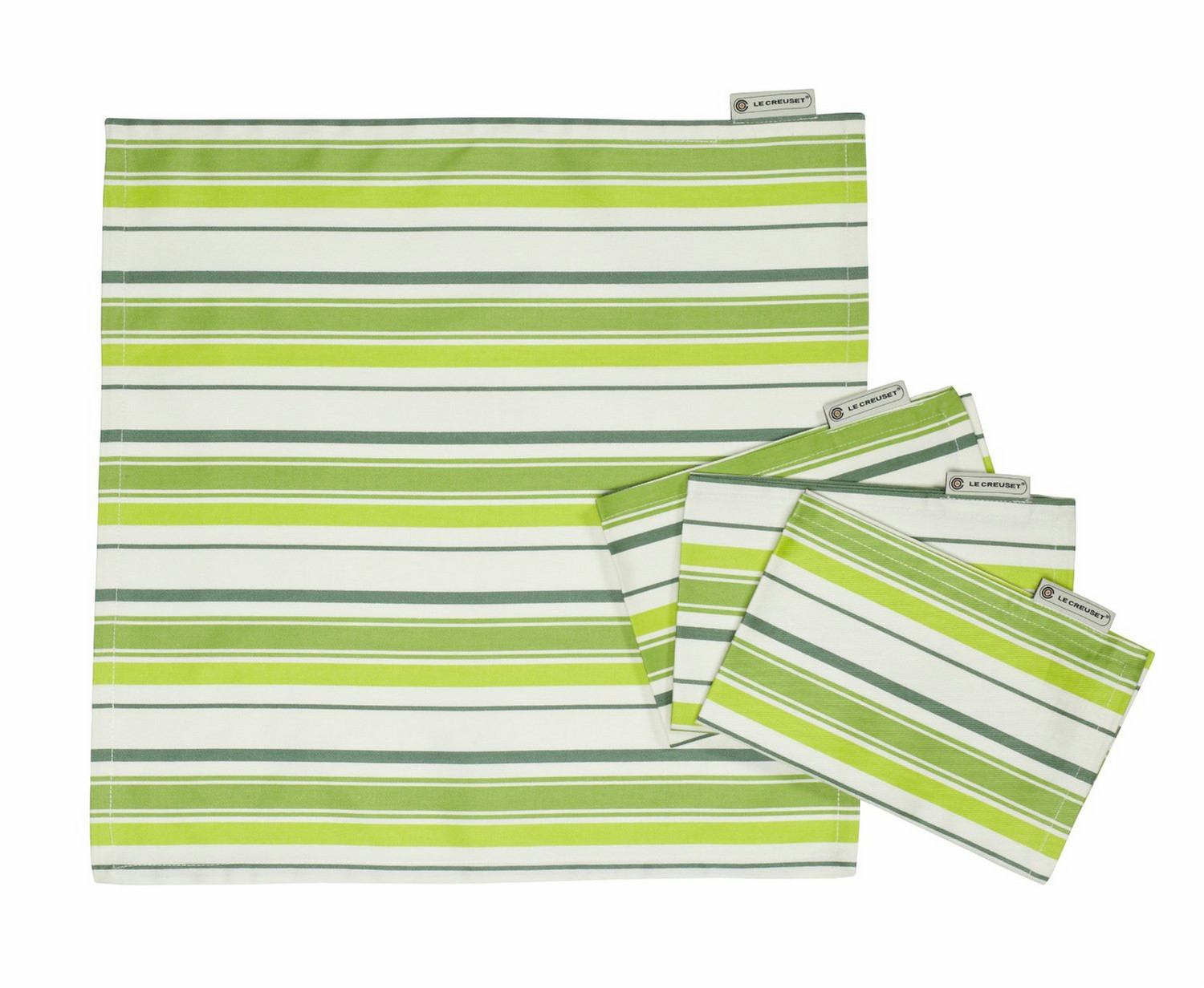 Le Creuset 95000400020600. Colour of product: green, White, Material: Cotton, Washing type: Machine wash. Width: 450 mm, Length: 45 cm. Quantity per pack: 4 pc(s)
