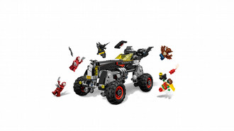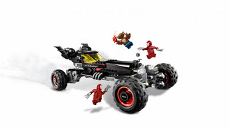 Chase Man-Bat™ and the Kabuki Twins™ with Batman™ and Robin™ in the Batmobile, with three different driving modes and two stud shooters. Includes five minifigures.