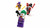 - Weapons include The Joker's pop-gun, Harley Quinn’s bat and Batgirl’s yellow Batarang.