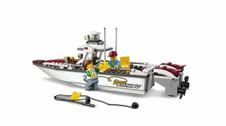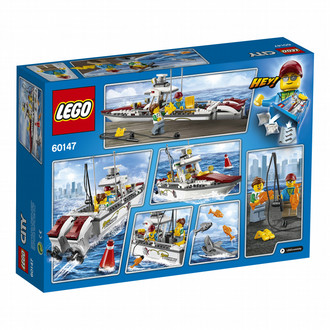 - Accessory elements include two life vests, one grey fish, two orange fish, fishing rod and a buildable buoy.