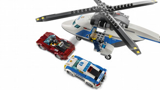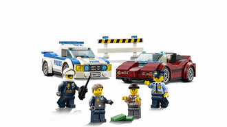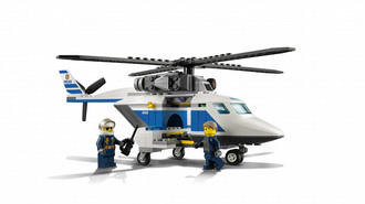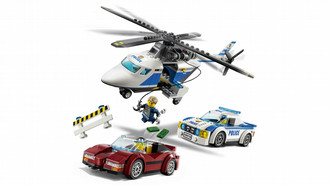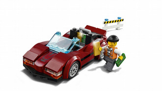 Red alert! The crook has stolen money and gold and is racing out of town in a stolen sports car. Hop in the police pursuit car and chase after him! If he’s too fast, call in the police helicopter. Lower Chase McCain down using the winch and help him make the arrest! It's a thrilling day on the job with the LEGO® City police!