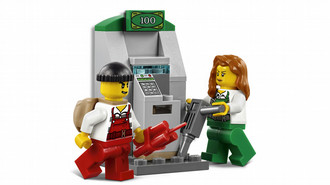Be part of the action with the LEGO® City police as they stop the crooks from getting away with the money from the ATM, featuring a police ATV that includes a radio and a set of handcuffs, plus an ATM with breakout function and opening door on the back, money bills, dynamite and a jackhammer. Includes four minifigures plus a police dog figure.