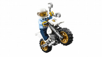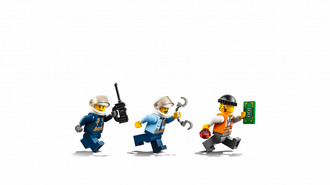Make a plan between the motorcycle officers to stop the crook! Jump on the police off-road bike or pursuit bike and speed after the tow truck. Recover the safe, make a daring arrest and take the crook off to jail. It’s another exciting day at work for the LEGO® City police!