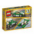 Drive in style with this sleek open-top Green Cruiser, featuring a green, white and black color scheme, tinted windshield, opening front trunk and rear hood, detailed engine, and a large two-minifigure cockpit with detailed dashboard and steering wheel. The 3-in-1 LEGO® Creator model has a three-part modular design for quick model reconfiguration, and rebuilds into a Fast Boat or a Truck.