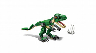 Have fun with the awesome T-Rex, featuring a dark-green and beige colour scheme, bright orange eyes, posable joints and head, large claws and an opening mouth with pointed teeth. Also includes the dinosaur’s prey in the form of a buildable rib cage. Rebuild this 3-in-1 LEGO® Creator Mighty Dinosaurs model to create a Triceratops or a Pterodactyl.