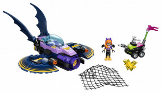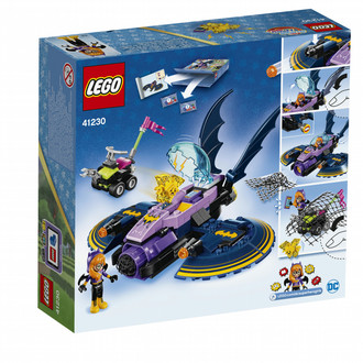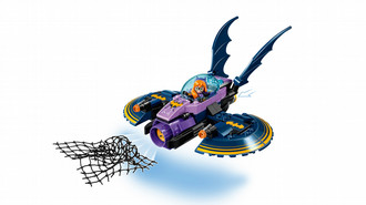 - Features a Batjet with opening cockpit, stud shooters on the wings, net launcher on the front and storage space for Batgirl’s ePad.