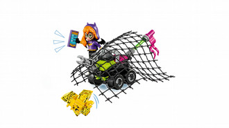 Sound the alarm! The fearful yellow Kryptomite™ has stolen Batgirl’s ePad and is speeding off on its buggy! This little Kryptomite scares easily, so keep your eyes on him. Help Batgirl™ give chase in her awesome Batjet. Fire the stud shooters and release the net to stop the sneaky little Kryptomite in its tracks. Nobody steals Batgirl's ePad!