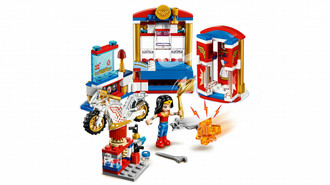 Be part of the action-packed LEGO® DC Super Hero Girls™ world as Wonder Woman™ protects her Golden Lasso from the Kryptomite™. This great set features a Wonder Woman mini-doll figure, dorm room with an opening window, bed with a secret drawer/screen, separate opening wardrobe and workstation, plus an ‘invisible' motorbike, tool/paint and a suspicious orange Kryptomite.
