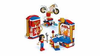 - Accessory elements include Wonder Woman’s Golden Lasso, a wrench, two spray paint cans, trophy and a tub of wax polish for the bike.